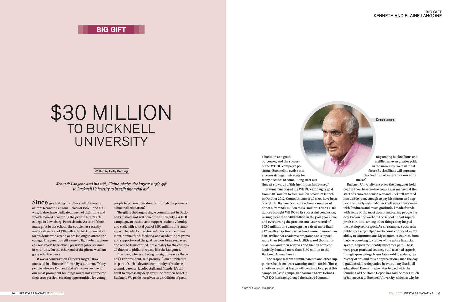 Kenneth and Elaine Langone Pledging the largest single gift to Bucknell University to benefit financial aid. You need an account to see this page! Please login or subscribe to Lifestyles Magazine to view this issue.