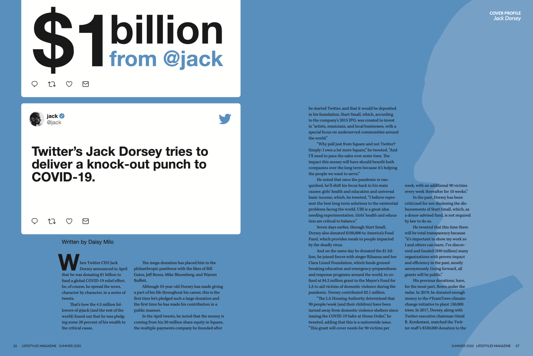 Jack Dorsey Twitter’s Jack Dorsey tries to deliver a knock-out punch to COVID-19. You need an account to see this page! Please login or subscribe to Lifestyles Magazine to view this issue. Daisy Milo Author at Lifestyles Magazine