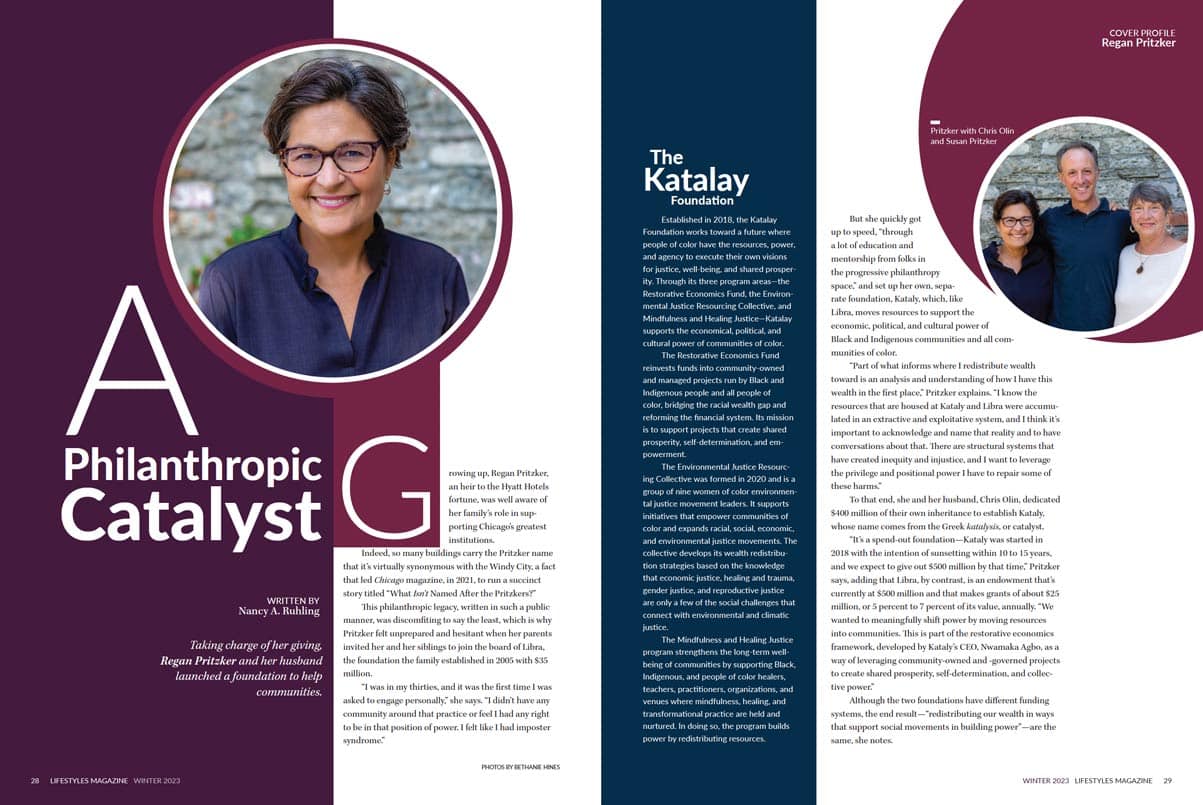 Regan Pritzker Regan Pritzker and her husband launched a foundation to help communities. You need an account to see this page! Please login or subscribe to Lifestyles Magazine to view this issue. Nancy A. Ruhling Author at Lifestyles Magazine