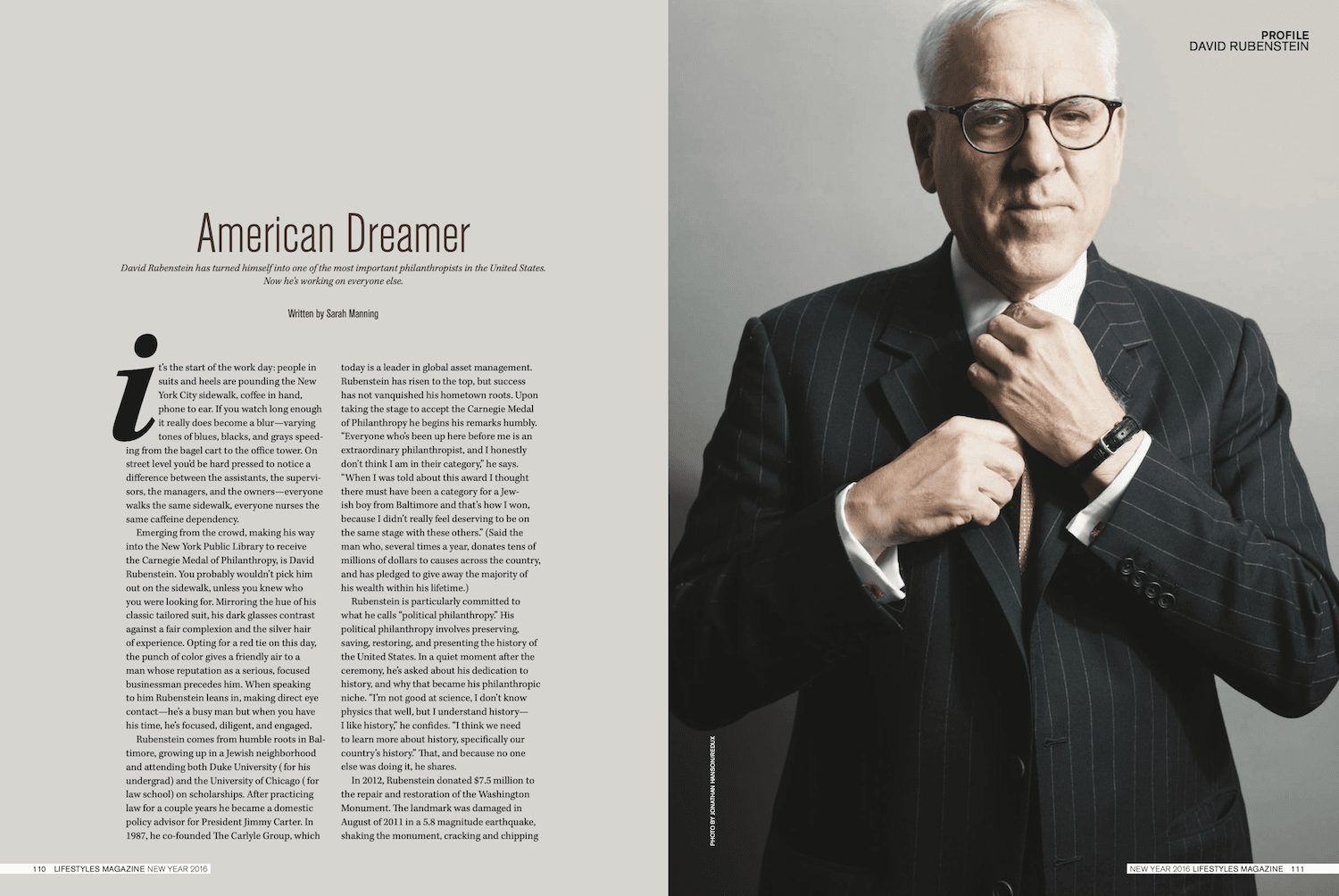 David Rubenstein David Rubenstein has turned himself into one of the most important philanthropists in the United States. Now he’s working on everyone else. You need an account to see this page! Please login or subscribe to Lifestyles Magazine to view this issue. Sarah Manning Author at Lifestyles Magazine