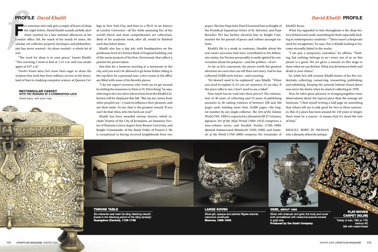 David Khalili While amassing one of the world’s hottest art collections, buying up London real estate, and lecturing everywhere from Tel Aviv to Abu Dhabi, who has time for sleep? Not David Khalili. Click on the image to read more Marc Weisblott Author at Lifestyles Magazine