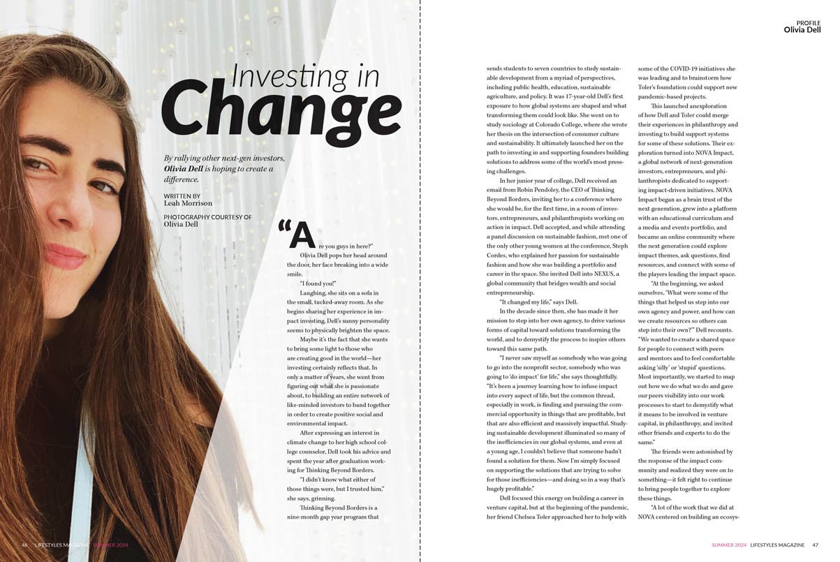 Olivia Dell Hoping to create a difference by rallying other next-gen investors. You need an account to see this page! Please login or subscribe to Lifestyles Magazine to view this issue. Leah Morrison Author at Lifestyles Magazine