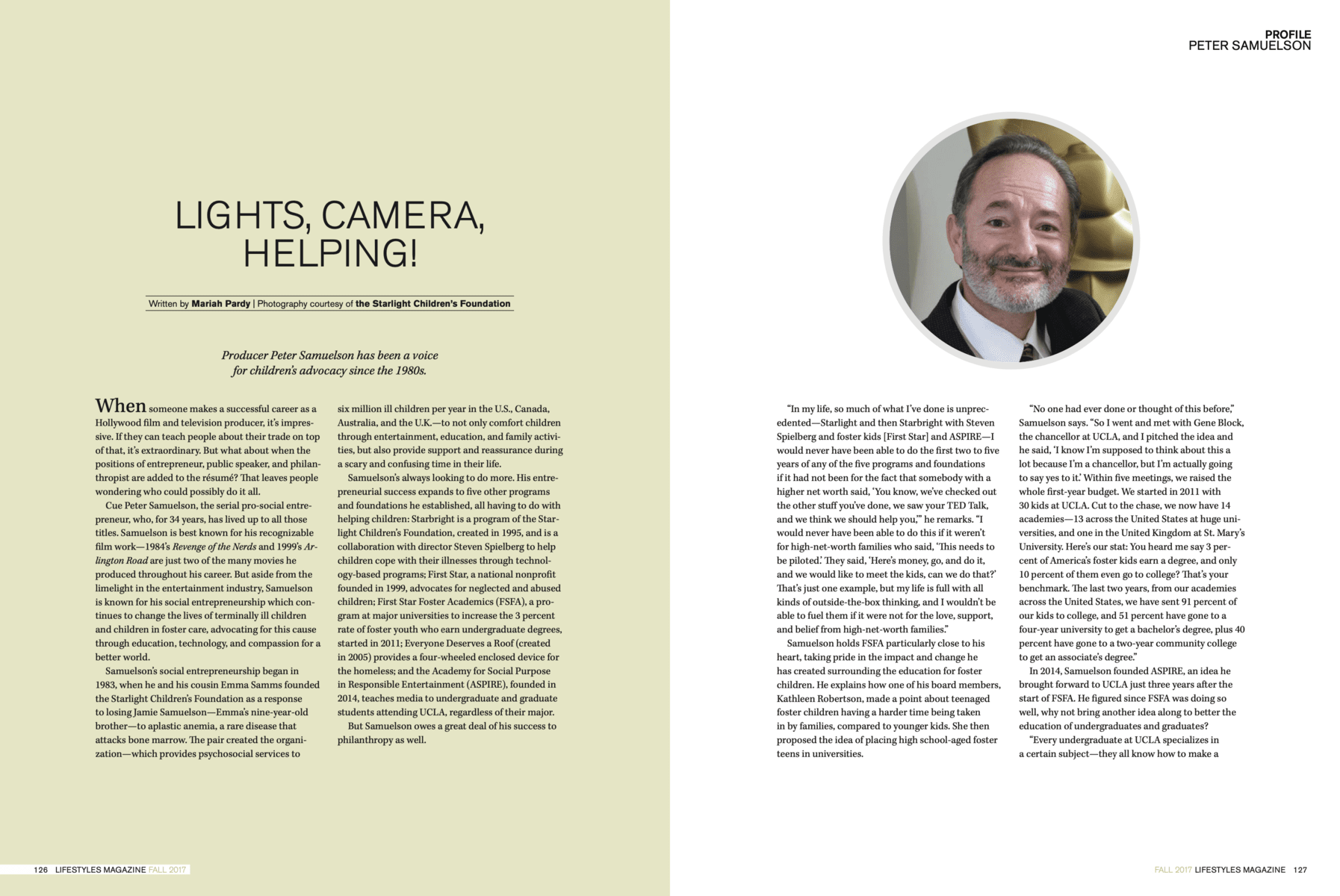 Peter Samuelson Producer Peter Samuelson has been a voice for children’s advocacy since the 1980s. Click on the image to read more Mariah Pardy Author at Lifestyles Magazine