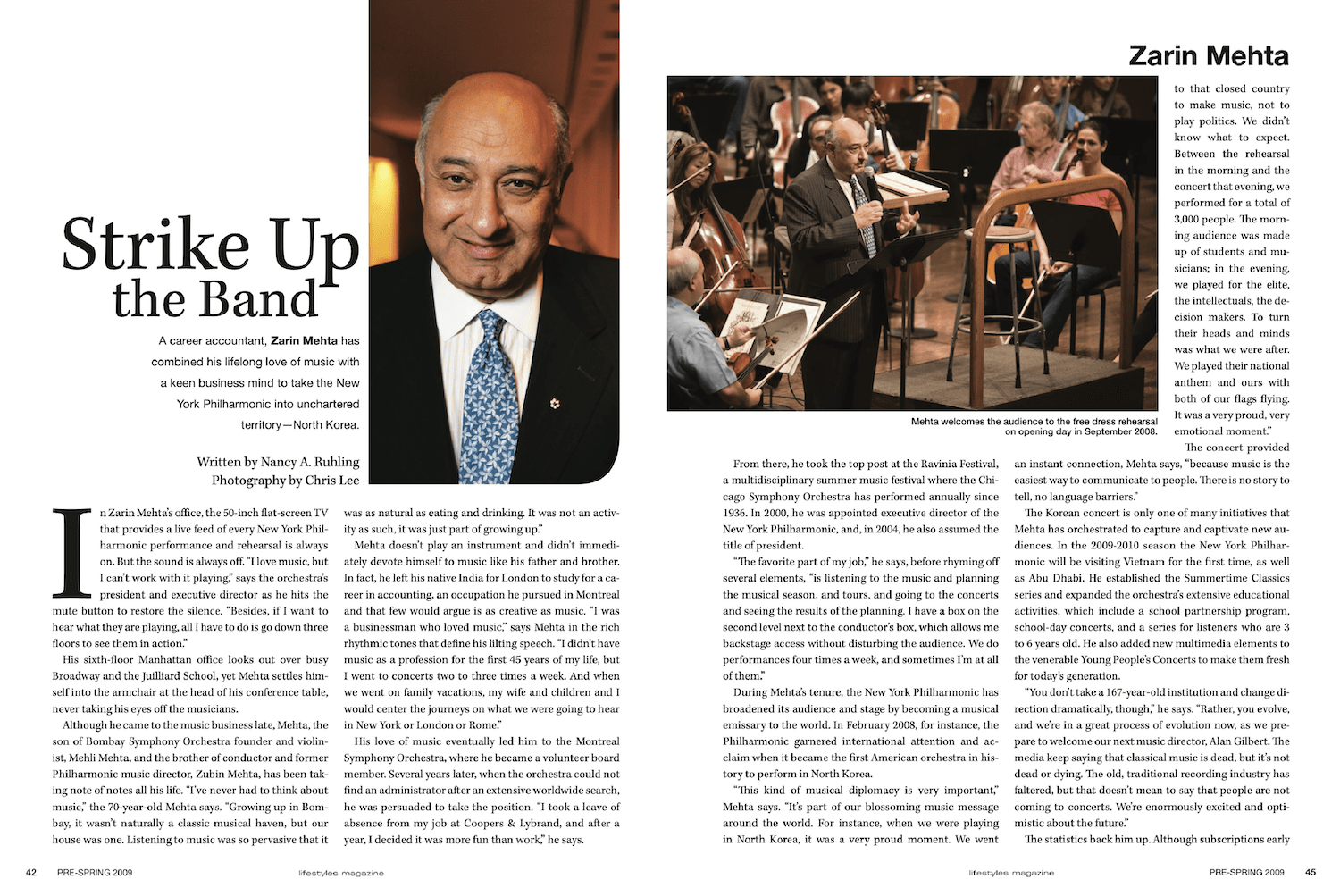 Zarin Mehta A career accountant, Zarin Mehta has combined his lifelong love of music with a keen business mind to take the New York Philharmonic into unchartered territory—North Korea. Click on the image to read more Nancy A. Ruhling Author at Lifestyles Magazine